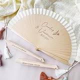 - Portátil y práctico: El abanico para invitados de boda mide 8,07 pulgadas de largo y 13,7 pulgadas de ancho cuando está desplegado. El abanico plegable personalizado es ligero y fácil de...